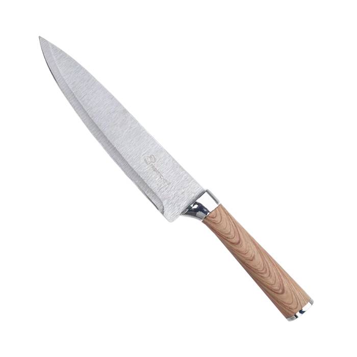 Cuchillo de cocina de 8" de acero inoxidable con mango simil madera, soft touch.