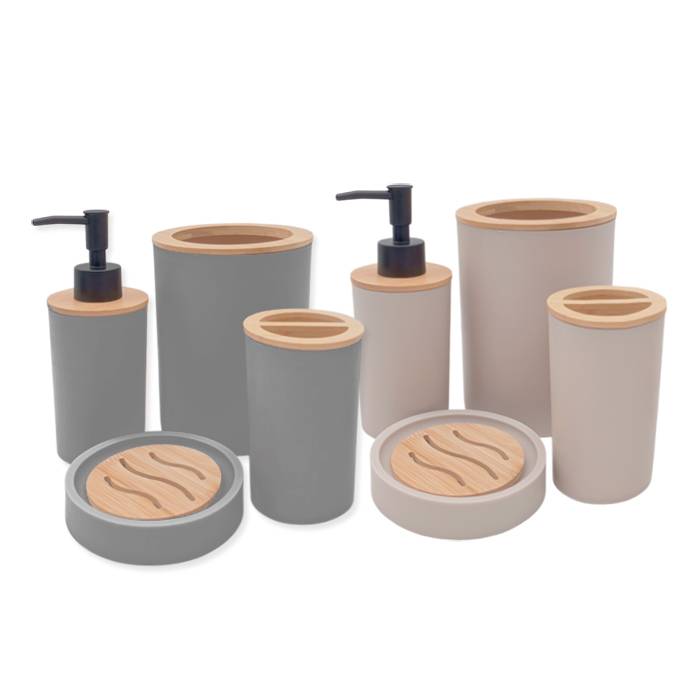 Incluye: Mini cesto, jabonera, dispenser y porta cepillo