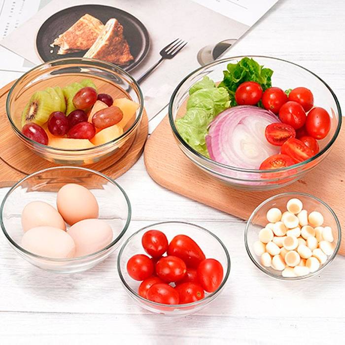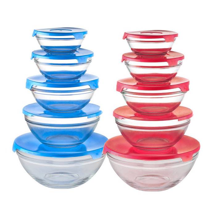 Set x5 bowls de vidrio con tapa de plástico