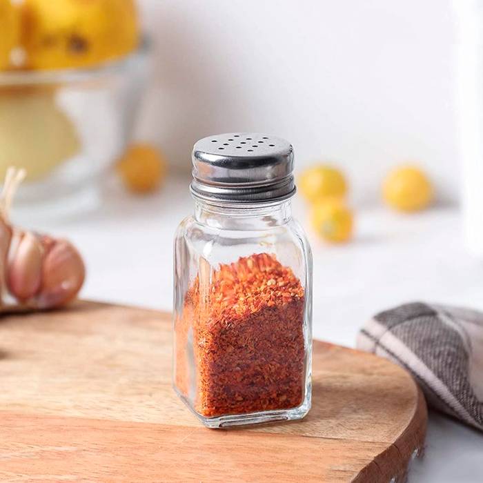 ESPECIERO CUADRADO DE VIDRIO CON TAPA A ROSCA DE CHAPA