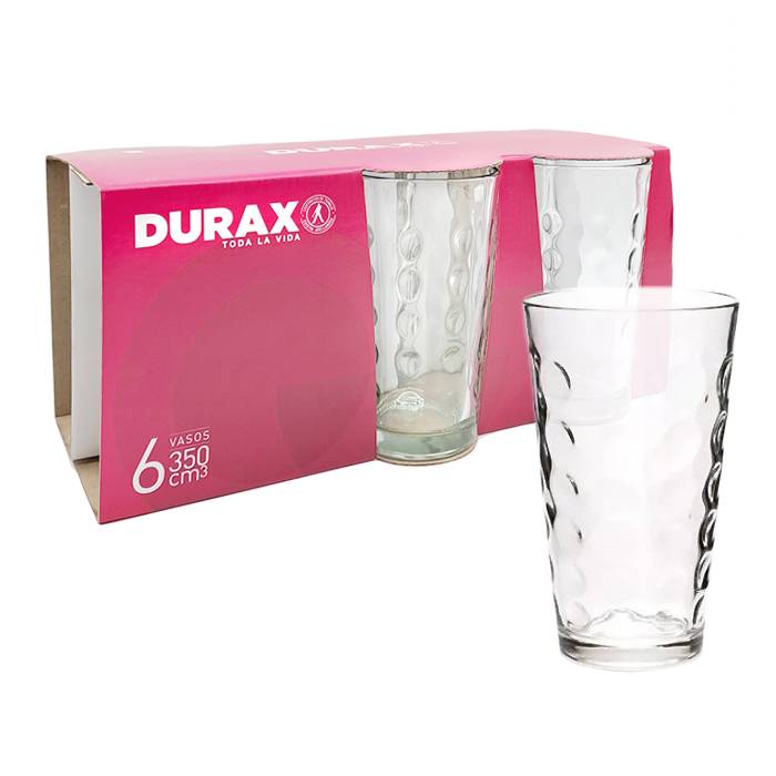 Pack x6 Vaso de vidrio transparente.350 ccDiseño IrupeMedidas:Altura:13 cm.Diámetro:7,5 cm.Capacidad:350 cc.