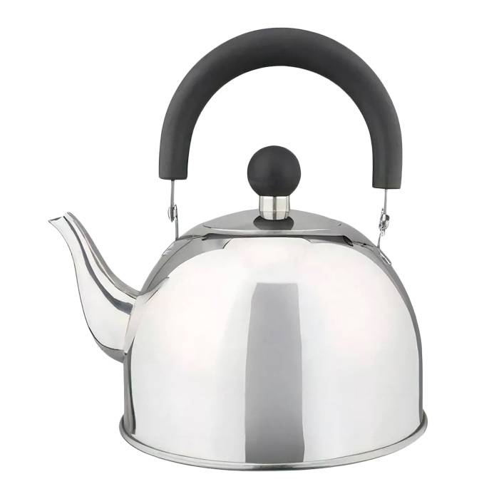Pava de acero inoxidable con mango negro soft-touch y pico cebador.