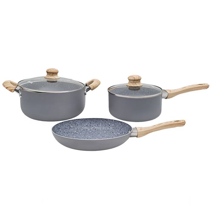 Batería de 5 Piezas, Línea Granito de aluminio con triple capa antiadherente, incluye tapas de vidrio.