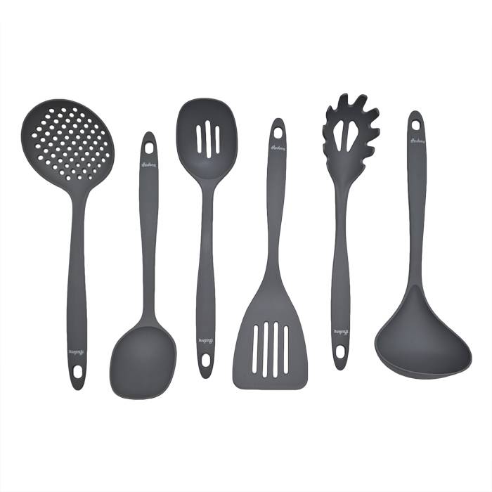Incluye: espumadera, espátula, cucharón, cuchara, cuchara para pastas y cuchara calada.