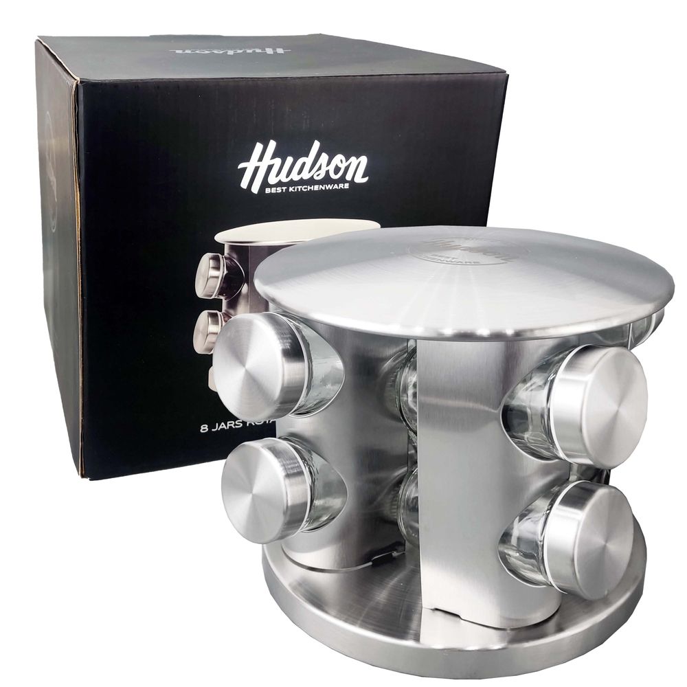 Set x 8 especieros con holder giratorio de acero inoxidable.