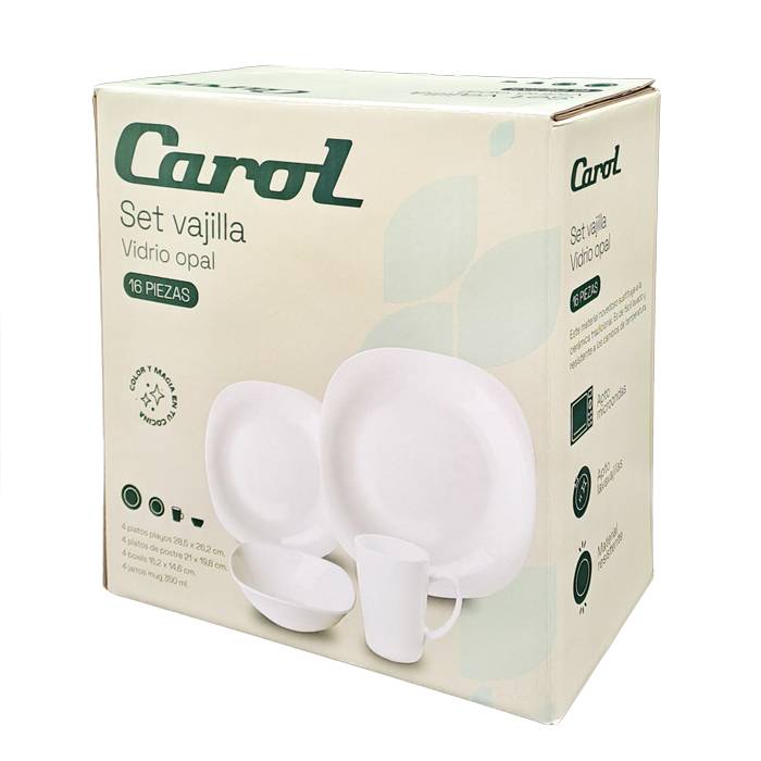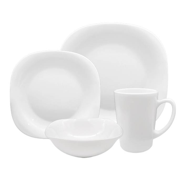 Set de vajilla Carol de vidrio opal blanco de 16 Piezas cuadrado