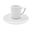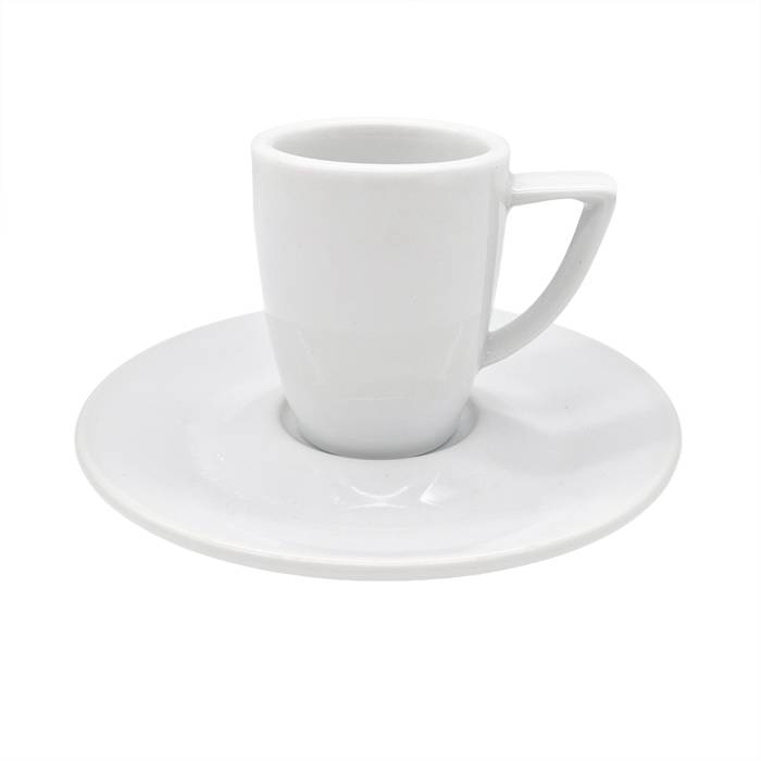 Medidas:Alto: 6 cm.Diámetro: 5 cm.Ancho con asa: 7 cm.Capacidad: 50 ml.Diámetro de plato: 12,5 cm.