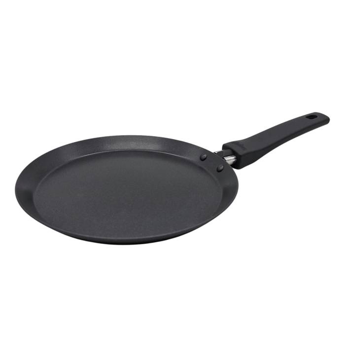 Panquequera de 20cm, de aluminio con doble capa antiadherente y mango siliconado, antideslizante y antitérmico.Línea Daily. Color negro.Medidas:Diametro: 20 cm.Largo de mango: 16,5 cm.Alto: 1,6 cm.Largo total: 36,5 cm.