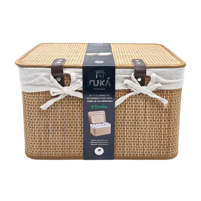 CANASTOS X3 BAMBU CON TAPA