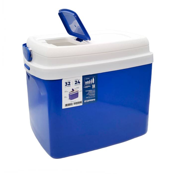 Conservadora grande con manija, con compartimiento de acceso sin necesidad de abrir la tapa.color azul MedidasAlto: 37,5 cm.Ancho: 38,5 cm.Largo Total: 49 cm.Capacidad: 32 lts.