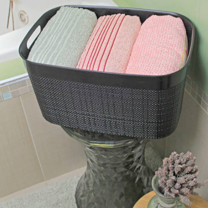 Canasto IMPORTADO con tapa de plástico con trama simil yute