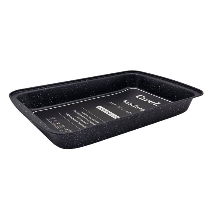 Asadera rectangular de acero carbono con antiadherente. Línea Granito Negro.