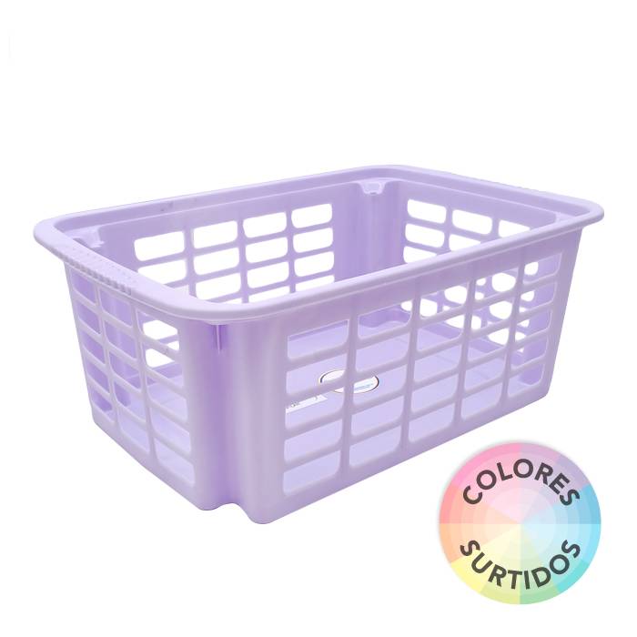 Canasto calado apilable de plástico chico.