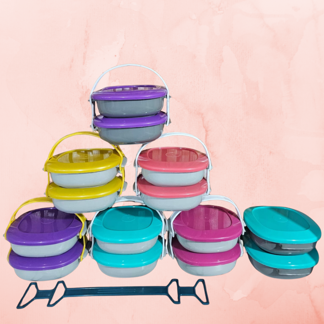 Contiene 2 hermeticos de 16cm x 16cm x 5cm de alto con manija
