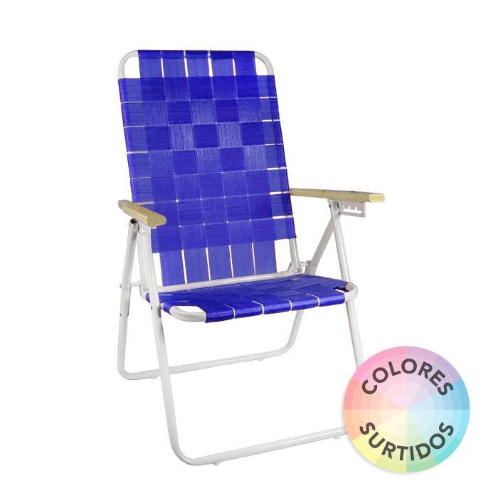 Reposera de caño blanco con tiras de PVC y apoya brazos de madera.5 posiciones.Medidas:Alto total: 1 mtsAltura de respaldo: 69 cmLargo: 50 cm.Ancho total: 61,5 cm