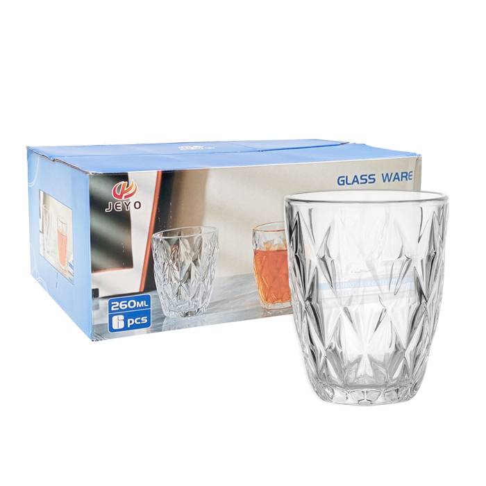 Pack x 6 vasos de vidrio facetados transparente