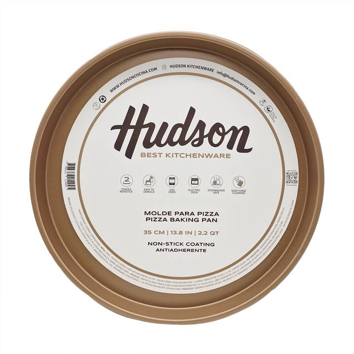 Pizzera de acero carbono con doble capa antiadherente.Líne CobreMedidas:Diámetro: 35 cm.Apto horno a gas, eléctrico y lavavajillas.