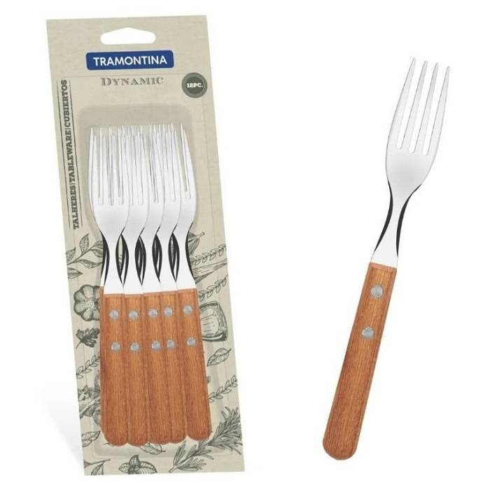 Set x 12 tenedores de acero inoxidable con mango de madera.Línea: DynamicMedidas:Largo total: 19,3 cm.Largo de mango:9,5 cm.Ancho:2,4 cm.